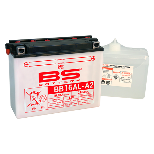 BB16AL-A2 12V 16AH 210CCA DRY CONVENTIONAL BS MOTORCYCLE BATTERY - RHP