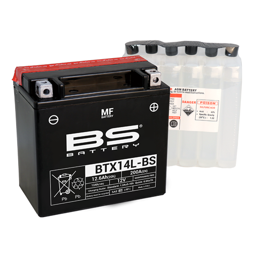 BTX14L-BS 12V 200CCA 12AH MAINTENANCE FREE BS MOTORCYCLE BATTERY