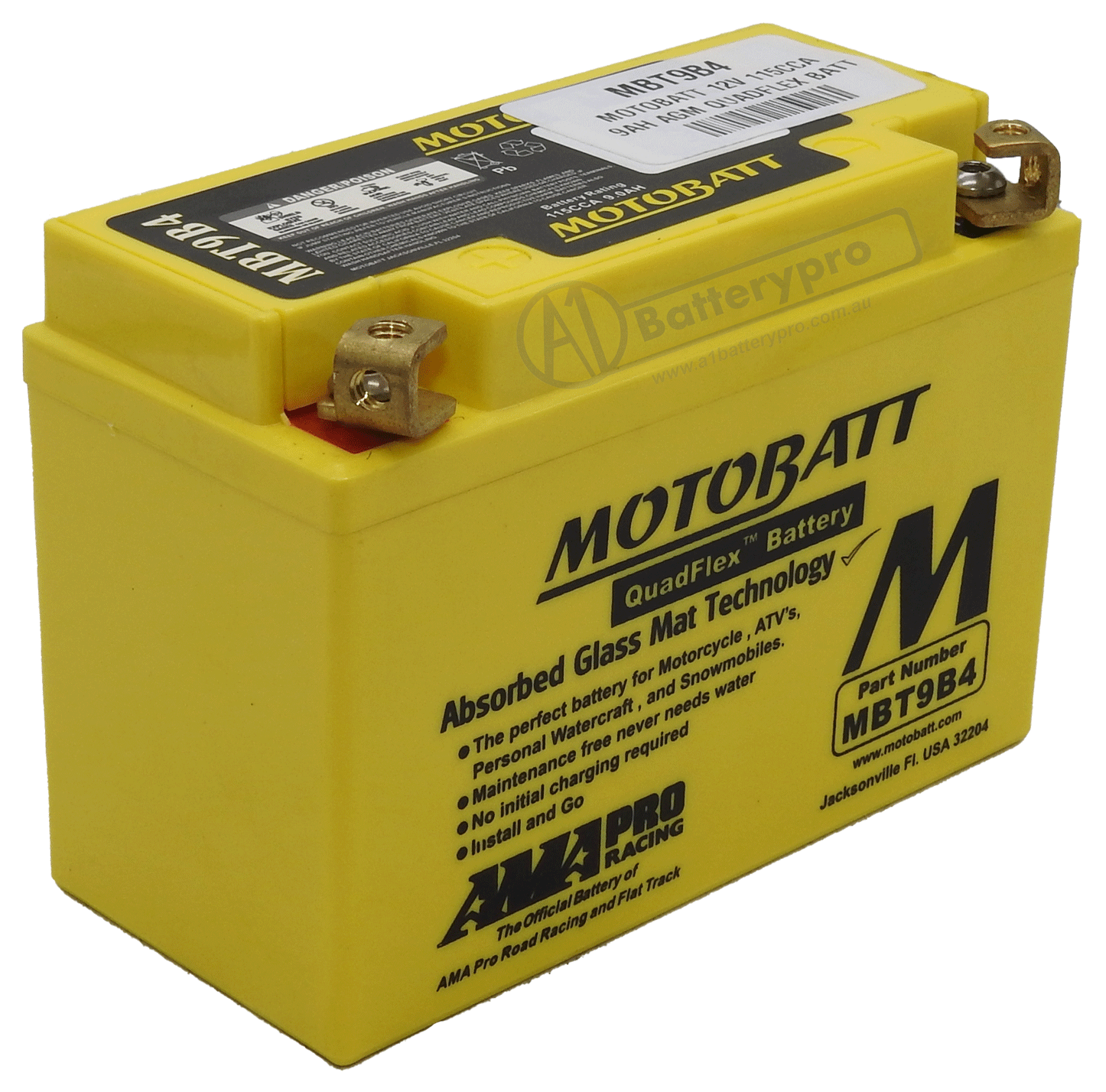 MBT9B4 - 12VOLT 140CCA 9AH MOTOBATT AGM QUADFLEX BATTERY - LHP