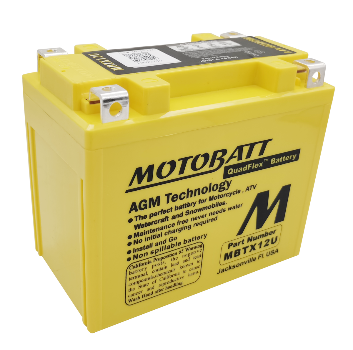 MBTX16U - 12VOLT 270CCA 19AH MOTOBATT AGM QUADFLEX BATTERY - RHP